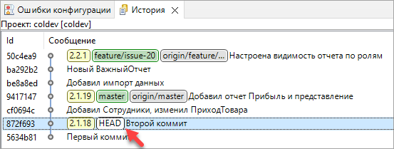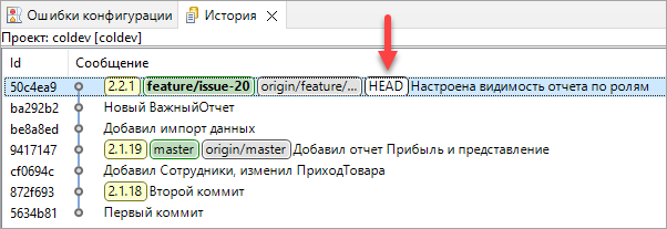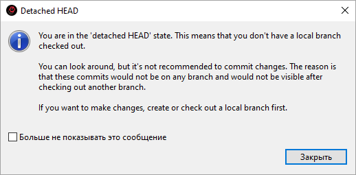 Однако нужно учитывать, что такая операция переведет ваш репозиторий в состояние «отсоединенный HEAD», и 1C:EDT предупредит вас об этом.