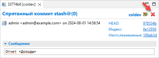 Вы увидите строку 0 Отчет «Доходы» — это ваши изменения. Если бы припрятанных изменений было много, то были бы и другие строки: 1 ..., 2 ... и т.д. Нажмите 0 Отчет «Доходы».