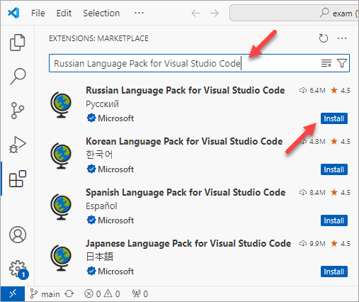 В стандартном виде Visual Studio Code имеет интерфейс на английском языке. Однако с помощью расширения Russian Language Pack for Visual Studio Code вы можете использовать интерфейс Visual Studio Code на русском языке. Чтобы установить это расширение, выполните следующие действия: