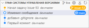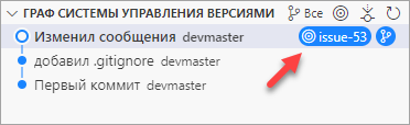 Вы решаете, что теперь вы будете заниматься задачей №53 из вашей системы проектирования. Вы создаете новую ветку issue-53 и Visual Studio Code сразу переключает вас на нее.
