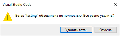 Аналогичный результат будет, если вы захотите удалить такую ветку интерактивной командой (). Visual Studio Code покажет вам предупреждающее сообщение.