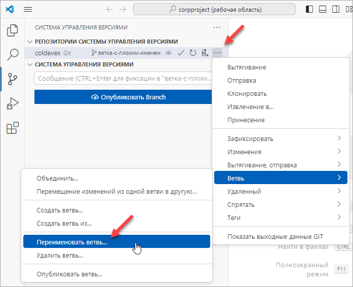 - [deleted] ветка-с-плохим-именем Теперь старое имя ветки полностью заменено исправленным.