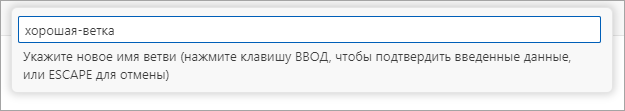 В палитре команд введите новое имя ветки и нажмите Ввод.