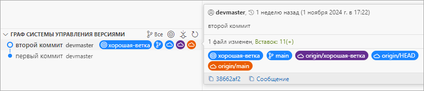 Теперь текущая ветка хорошая-ветка присутствует и на удаленном сервере.
