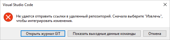 Если вы попробуете сейчас отправить свои изменения в удаленный репозиторий, то получите следующее сообщение: