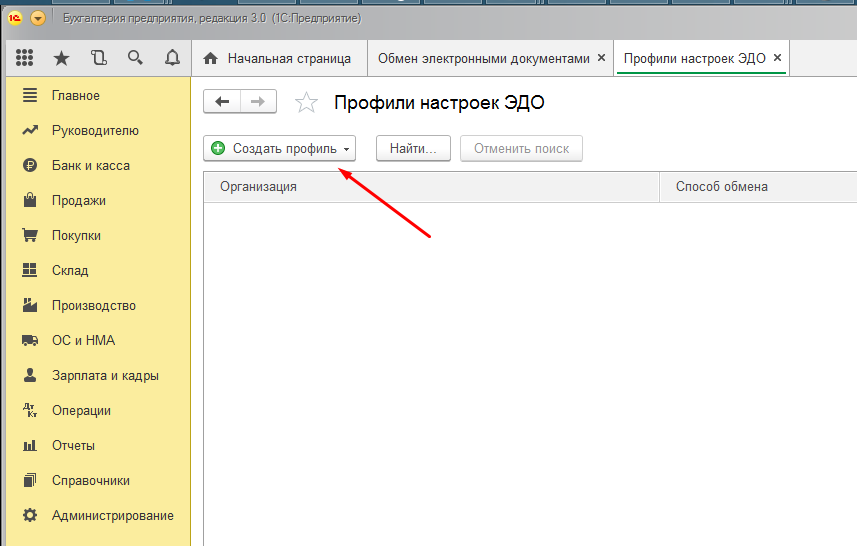 5. Создать Профиль настройки ЭДО (если организаций несколько, то по каждой из них).