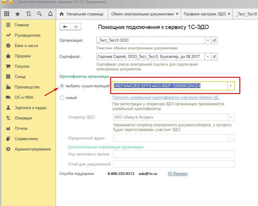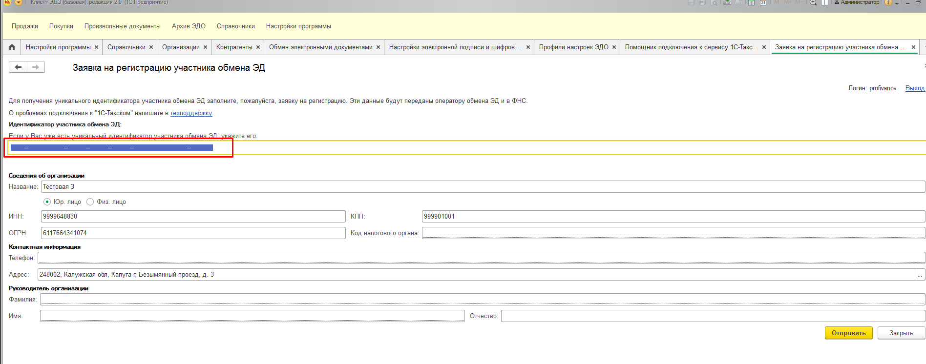 При создании Профиля настроек ЭДО указать имеющийся Идентификатор участника ЭДО: