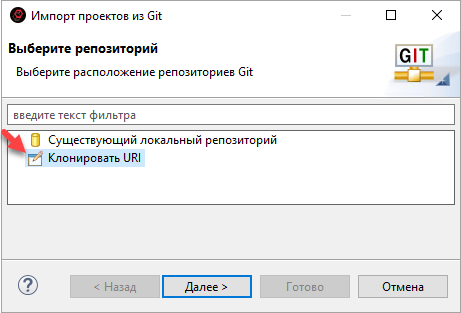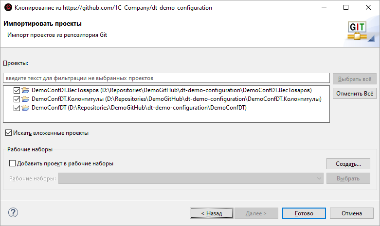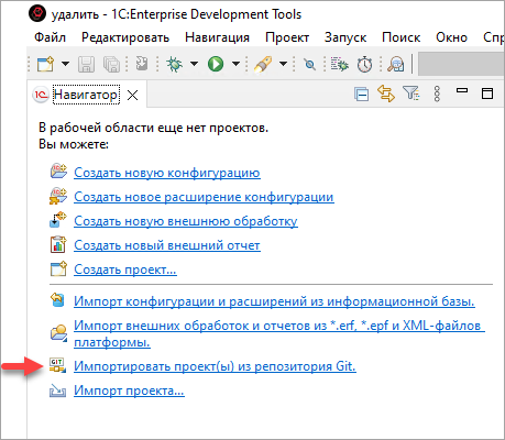 Импортировать проект(ы) из репозитория Git;