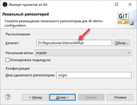 ваш локальный репозиторий и нажмите Далее;