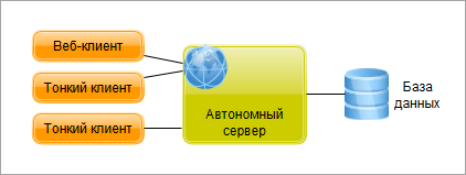 - Автономный сервер содержит встроенный веб-сервер, на котором можно опубликовать конфигурацию и использовать веб-клиента для работы
