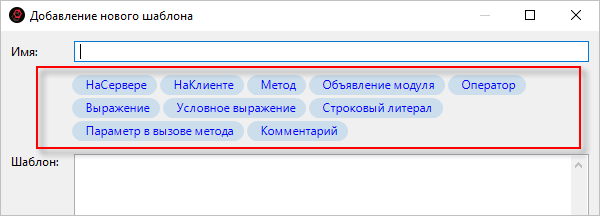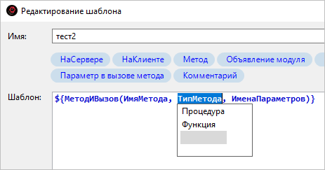 Значение параметра Имя процедуры используется, во-первых, как подсказка для ввода. Оно отображается в маркере после вставки шаблона.