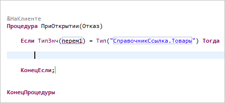 Если ТипЗнч(${Редактировать()}) = Тип("${ВыборТипа()}") Тогда