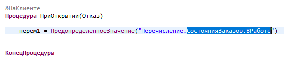 Переменную ${ЗначениеПеречисления()} можно использовать, например, для выбора предопределенного значения на клиенте.