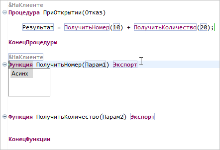 Кроме этого 1C:EDT предложит использовать модификатор Асинх.