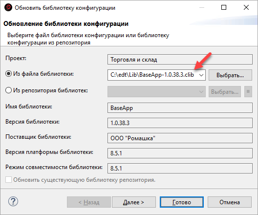 нажмите Подключить библиотеку конфигурации....