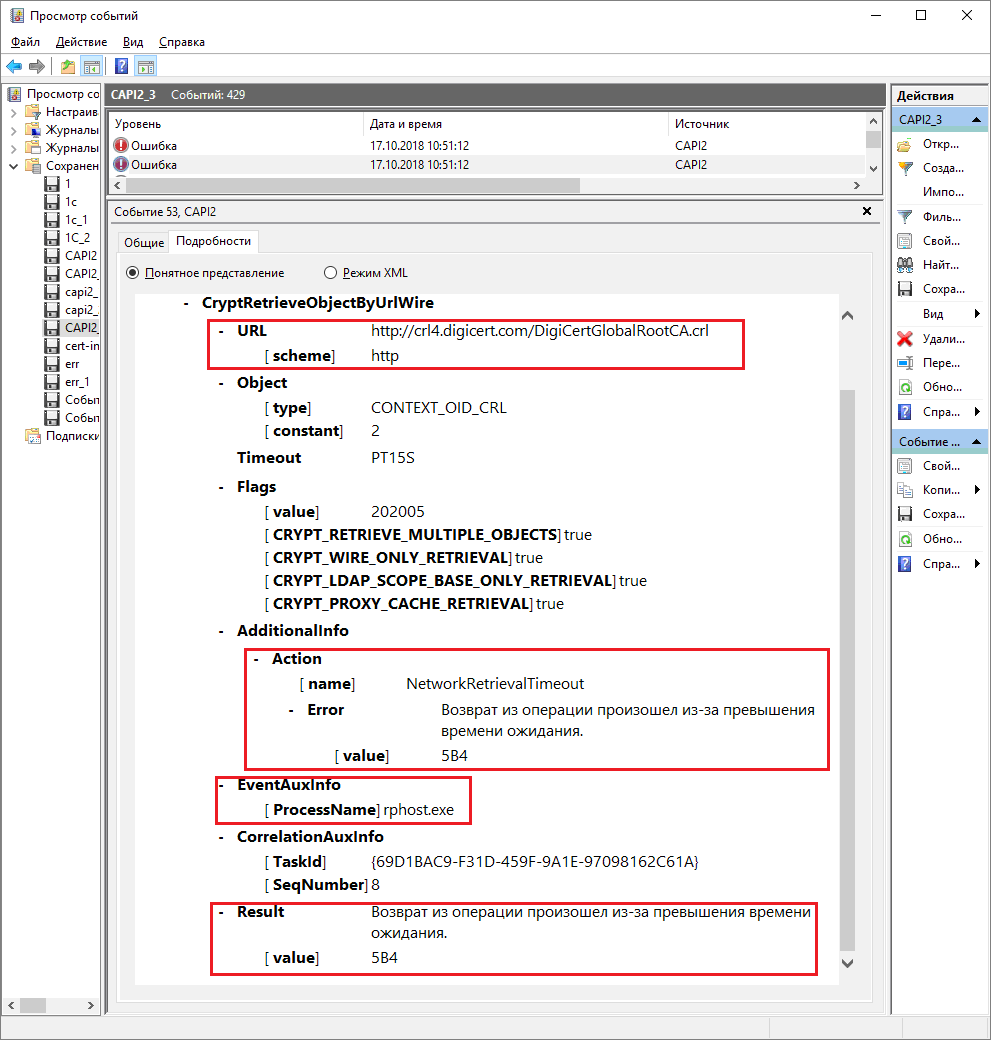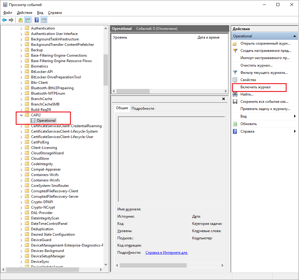 Для точной диагностики проблемы следует посмотреть записи в журнале CAPI2 операционной системы Windows.