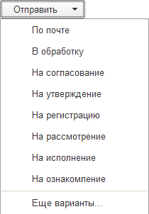 При создании процесса на основании через меню основные команды Отправить предмету присваивается роль Основной. Основными командами являются все, кроме Еще варианты… и По почте. Если процесс создается по шаблону с предметами, то роль определяется шаблоном.