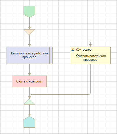 Работа комплексных процессов также обеспечивается картой маршрута, но только для того, чтобы процесс завершился при выполнении всех подчиненных действий. Остальная логика работы процесса (порядок создания действий) определена вне карты маршрута.