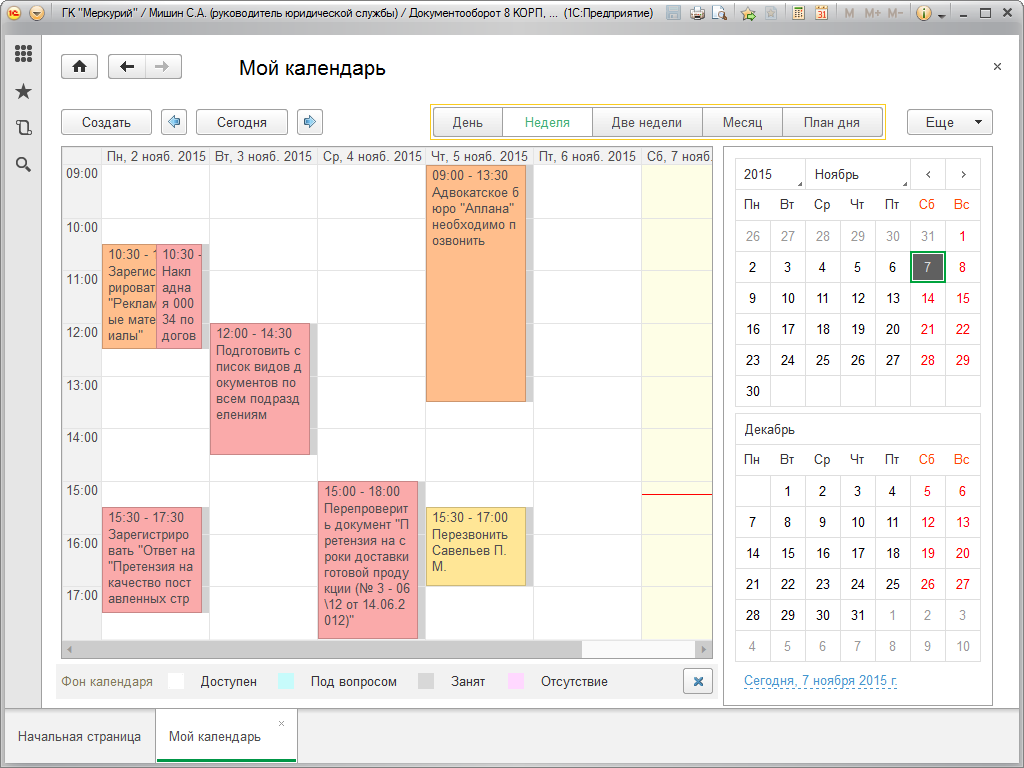 В календаре пользователя отображаются различные данные – записи календаря, отсутствия, мероприятия.
