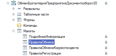 После отладки доработанных правил обмена рекомендуется включить их в состав конфигурации, сняв с поддержки макеты, чтобы: