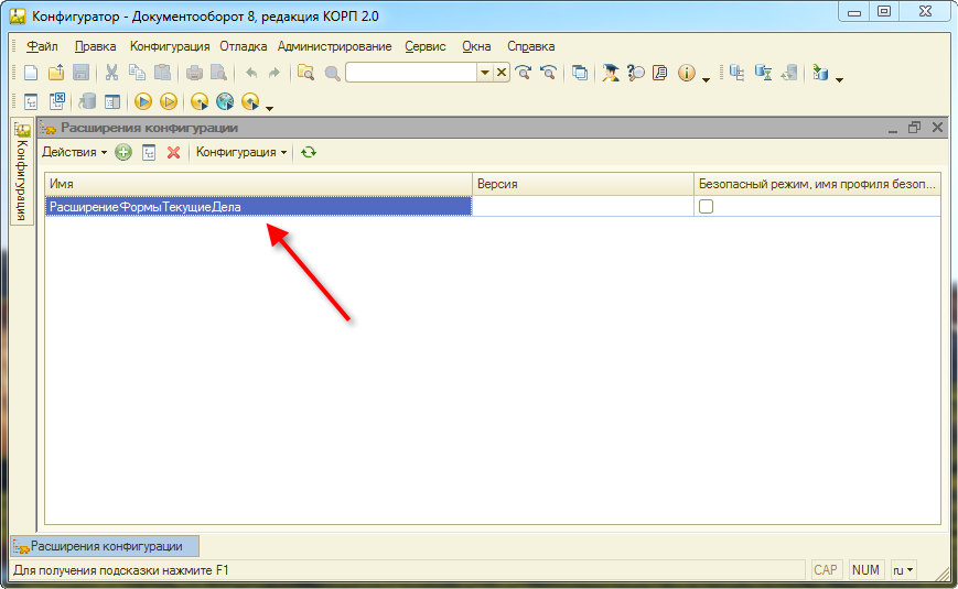 - В расширение РасширениеФормыТекущиеДела добавить форму ФормаТекущиеДела.