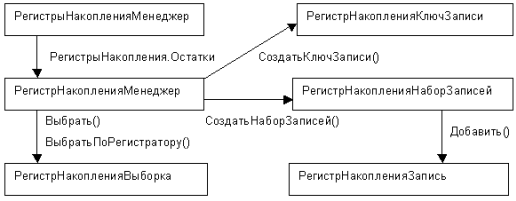 Ниже показана взаимосвязь программных объектов, характерная для объектов, имеющих ссылки (на примере справочников):