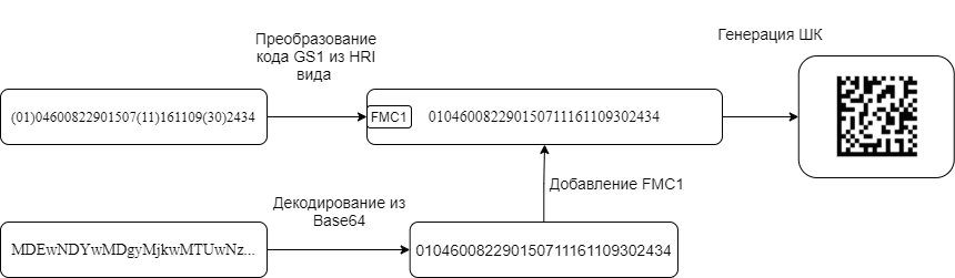К GS1 типам кодов относятся – EAN128, GS1 Datamatrix и GS1 Databar extended stacked. При задании ЗначенияКода GS1 кодов допускается две формы ввода: