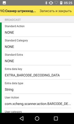 | Пользовательское Intent Action/User Intent Action | Пользовательский intent.action (из настроек ТСД) | ||