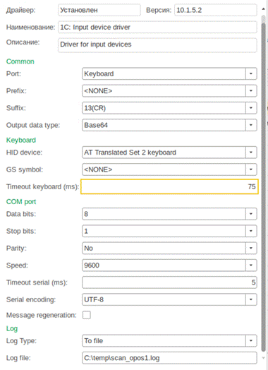 Начиная с 10-ой редакции драйвера "1С: Сканер штрихкодов" большинство настроек драйвера унифицировано и может быть представлено следующей таблицей. Различия составляют только специфические моменты, связанные с особенностями конкретной ОС.