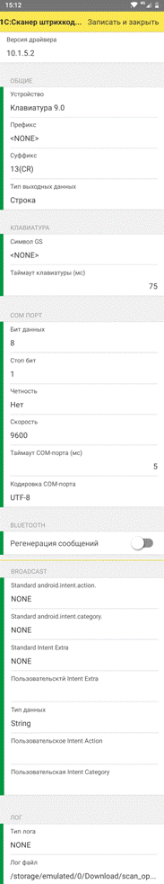 На Андроид устройствах с поддержкой функции сканирования ШК (в том числеТСД) появилась возможность получать результаты сканирования через механизм Broadcast (https://developer.android.com/guide/components/broadcasts), для устройств, которые поддерживают такой механизм передачи результатов сканирования. Для того чтобы, на Android устройстве подключить этот вариант взаимодействия необходимо настроить само устройство на передачу данных по Broadcast. В настройках ВК в поле Устройство необходимо указать Broadcast и настроить поля intent.action intent.category intent.extra intent extra type. Поля intent.action intent.category intent.extra имеют то же значение, что и в документации Android (https://developer.android.com/guide/components/intents-filters?hl=ru) и должны совпадать с теми, что перечислены на устройстве. Для примера приведем настройки ТСД Атол Smart.Lite.