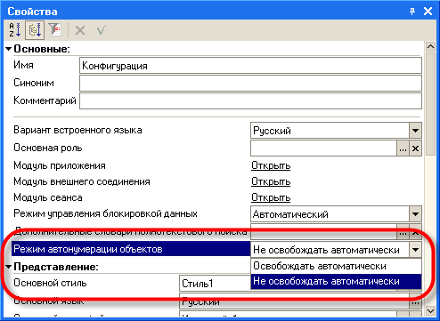 Реализовано свойство объекта метаданных конфигурация Режим автонумерации объектов: