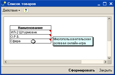 Табличный документ 1С:Предприятия 8 служит не только для печати документов и отчетов. Он имеет расширенные возможности, которые превращают его в интерактивное средство взаимодействия с пользователем. К таким возможностям относятся: