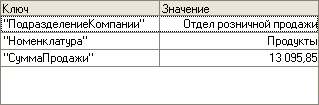 При этом ключи структуры будут содержать имена полей (измерений и ресурсов), а значения структуры — значения измерений и ресурсов, как показано на следующем рисунке: