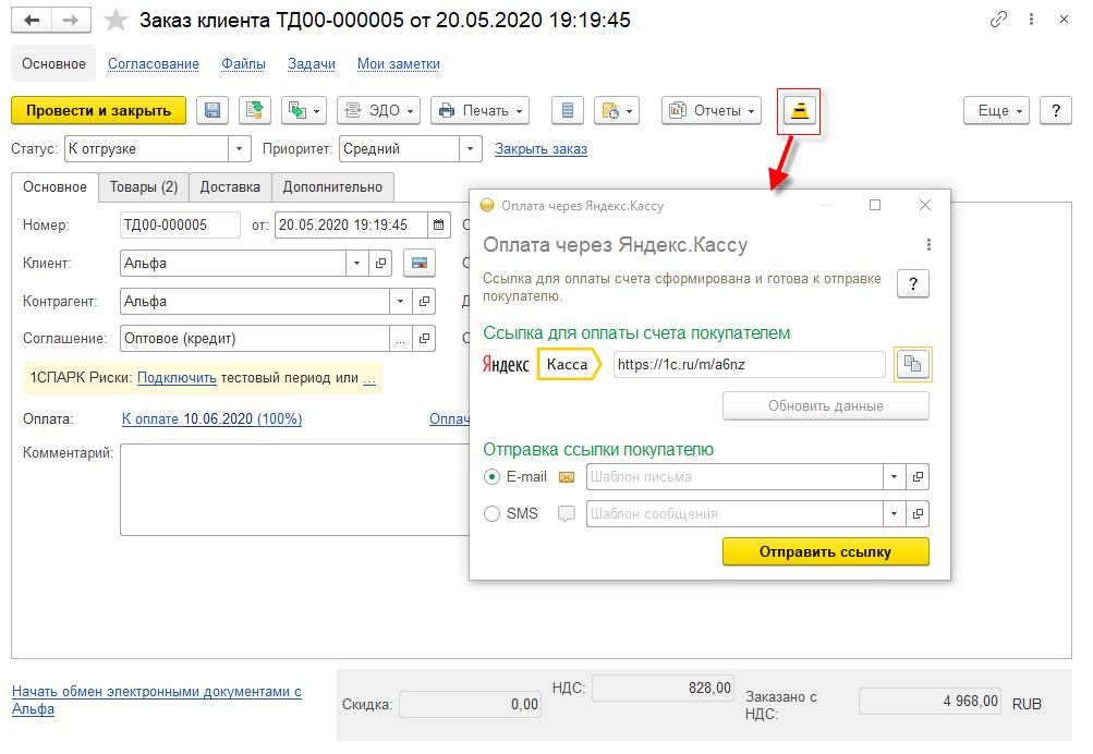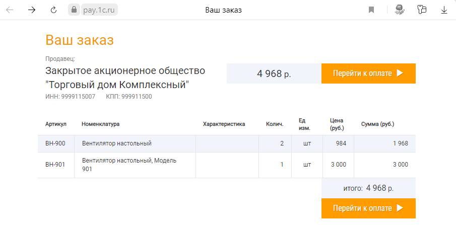 Эту ссылку можно отправить покупателю непосредтсвенно из программы по электронной почте или SMS или скопировать и отправить покупателю в любом мессенджере. По ссылке открывается электронный счет на оплату покупателю, в котором указаны все позиции заказа.