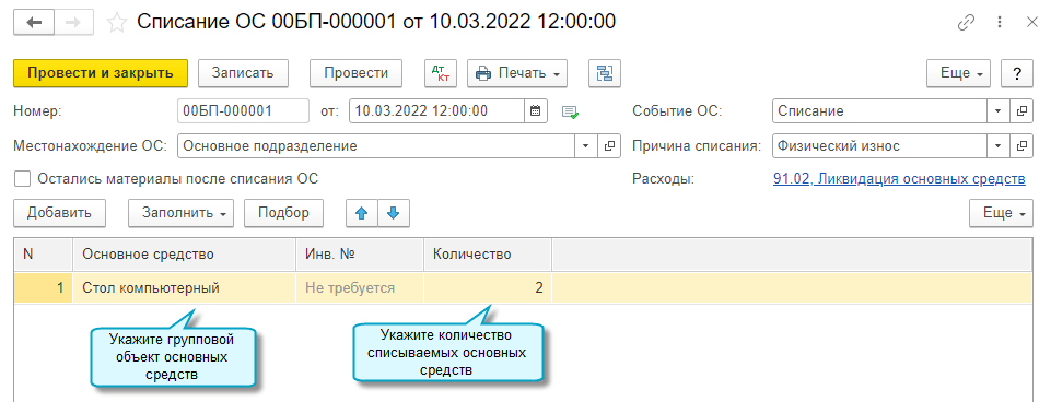 Подробнее о групповом учете основных средств см. в Статье.