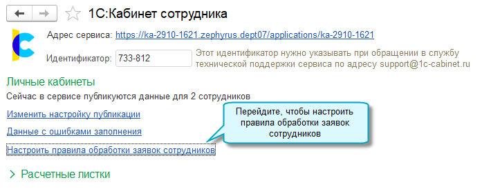 Добавлена возможность не подтверждать электронной подписью факт выполнения заявок сотрудников в сервисе 1С:Кабинет сотрудника. Она может использоваться, когда заявки выполняет сотрудник, у которого нет права подписи, и не требуется контроль выполнения заявок ответственными лицами. Не распространяется на документы, которые выдаются работнику и должны подписываться обязательно: справка о доходах (2-НДФЛ), справка с места работы.