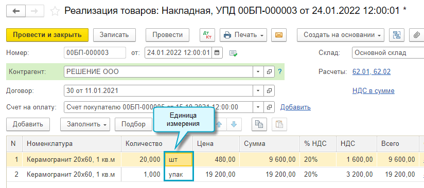 Добавлена колонка с единицей измерения в торговые и складские документы. Благодаря этому в документах различаются однотипные товары, учитываемые в разных единицах измерения.