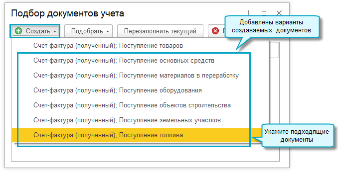 Сразу при обработке входящих электронных документов можно было создавать только документы: Поступление с видами операций Товары и Услуги, Поступление доп.расходов, Поступление из переработки.