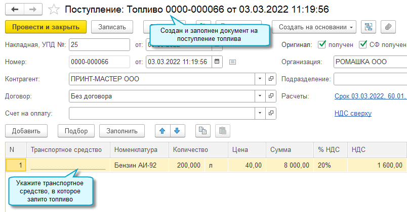 Теперь можно создавать документ Поступление с видами операций: