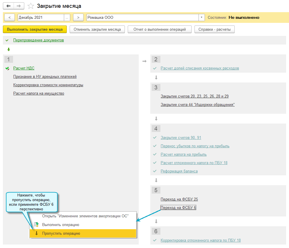 Регламентная операция по переходу на ФСБУ 6 перенесена в 5-ю группу закрытия месяца.