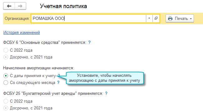 Добавлена возможность начислять амортизацию основных средств и предметов аренды с даты их принятия к учету. Этот вариант определения начала амортизации введен ФСБУ 6/2020 "Основные средства" и соответствует международным стандартам, поэтому рекомендуется организациям, которые готовят аудируемую бухгалтерскую отчетность и стремятся к сближению с МСФО. Если же для организации важно сближение бухгалтерского и налогового учета, то достаточно продолжать начислять амортизацию со следующего месяца после принятия к учету.