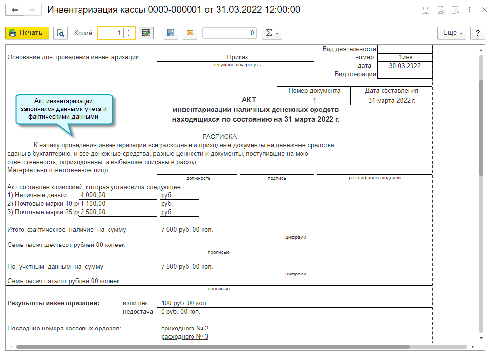 В каких случаях необходима инвентаризация кассы и как правильно ее провести подробнее читайте в Статье.