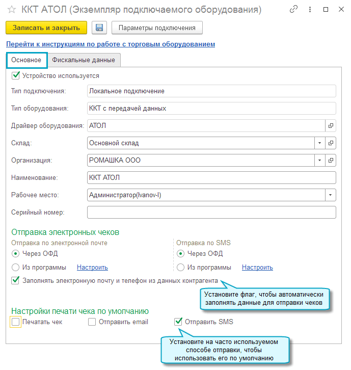Добавлена возможность указать часто используемые способы отправки чеков покупателям, чтобы они устанавливались по умолчанию.