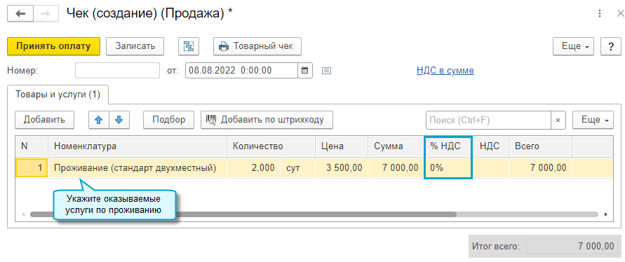 Добавлена возможность пробивать кассовые чеки при оказании услуг по предоставлению мест временного проживания в гостиницах по ставке НДС 0%. НДС по товарам, работам и услугам, приобретенным для оказания таких гостиничных услуг, принимается к вычету в конце отчетного квартала (Федеральный закон от 26.03.2022 № 67-ФЗ).