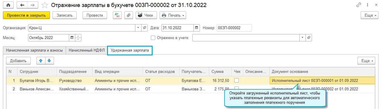 Добавлена загрузка и выгрузка исполнительных листов при обмене с конфигурацией 1С:Зарплата и управление персоналом. Функционал доступен при условии применения формата обмена EnterpriseData 1.11.