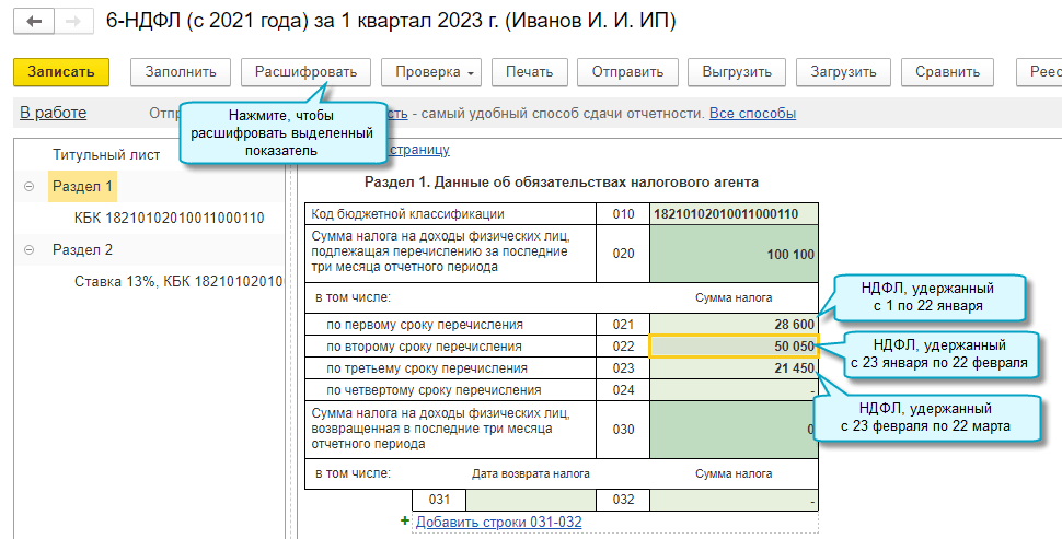 Подробнее о заполнении уведомления об исчисленных суммах налогов см. в Статье.