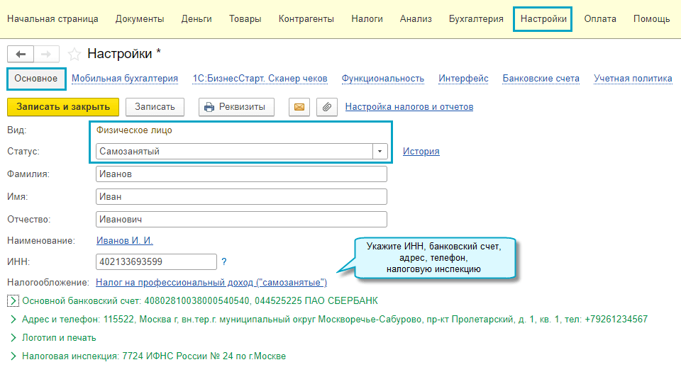 Поддержан учет операций для самозанятых без статуса индивидуального предпринимателя. Теперь физические лица могут вести учет и оформлять документы.