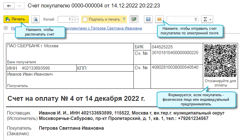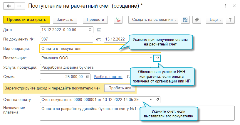 Можно подготовить и отправить покупателю документы: договор, счет на оплату, акт об оказании услуг, чек на полученный доход.