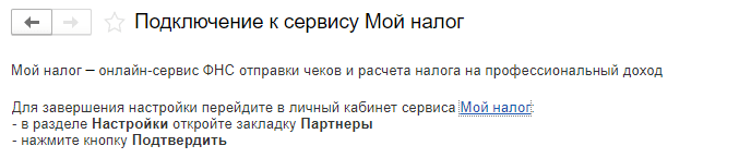 "Мой налог" - это официальный сервис ФНС для плательщиков НПД. Подключение к сервису " Мой налог" из приложения требуется, чтобы автоматически передавать сведения о доходах в ФНС, получать сумму налога, рассчитанную ФНС. Поэтому после регистрации в сервисе ФНС необходимо настроить это подключение в приложении. Функционал доступен для облачных версий.