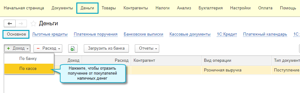 Простой интерфейс: меню "Деньги - Платежные поручения".